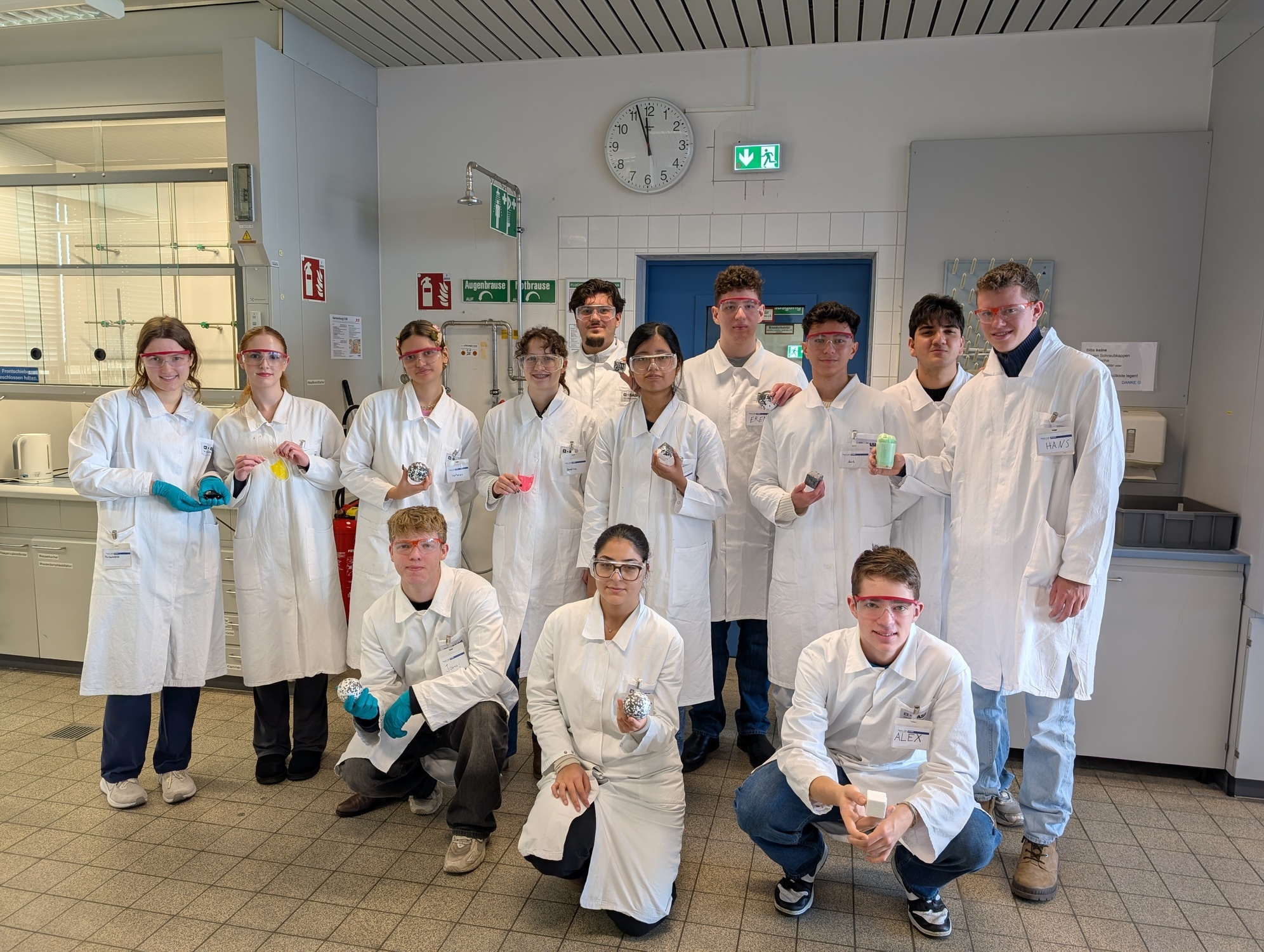 Am 15. Dezember besuchte der K2-Chemiebasiskurs von Frau Braunweiler das BASF-Oberstufenlabor. Hierbei durften allerlei Kunststoffe selbst hergestellt oder modifiziert werden: Slime, PU-Schaum, Acrylglasplatten, Nylonfaden, Polystyrol und Styropor/Desmodur -Bälle oder -Würfel standen auf der umfangreichen To-Do-Liste und gaben einen guten Einblick in die Kunststoffchemie und den Umgang mit Gefahrstoffen.Wirtschafts-LK der K2 besuchte das Unternehmen Bürstadt Furniture