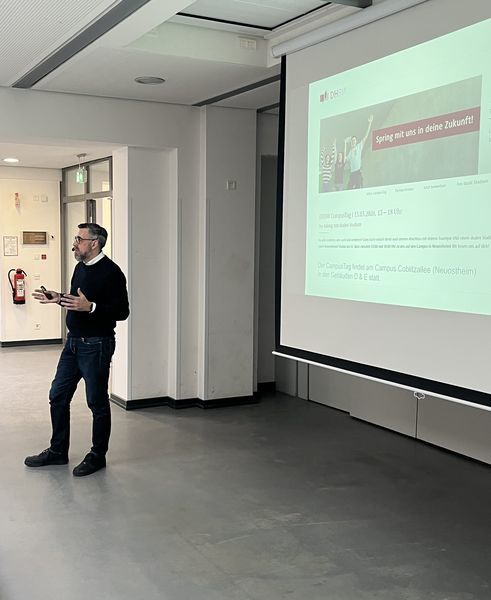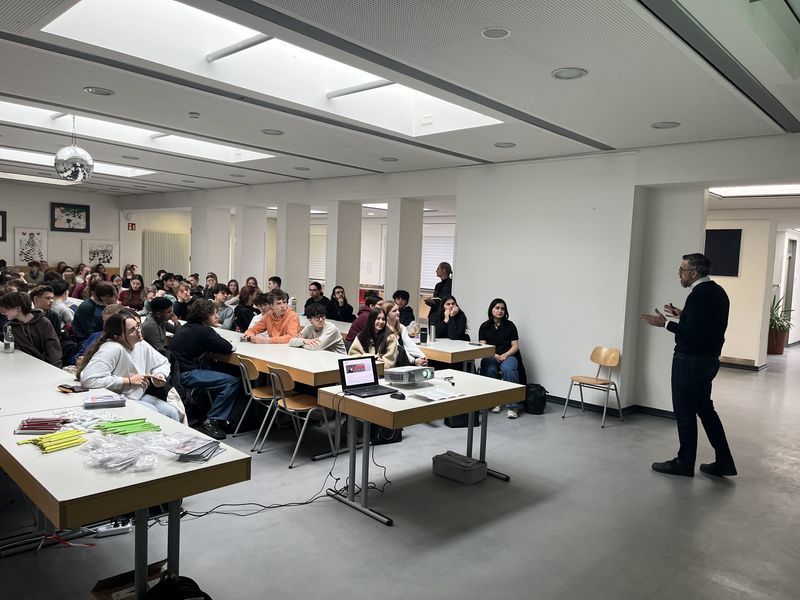 Am 28. Januar 2025 informierte Prof. Dr. Jeske von der Dualen Hochschule Baden-Württemberg (Standort Mannheim) die Schülerinnen und Schüler der Kursstufe 1 über die Möglichkeiten und Vorteile eines dualen Studiums. Die Duale Hochschule und ihre kooperierenden Unternehmen ermöglichte ihren Studierenden eine enge Verzahnung für Praxis- und Studienphasen in vielen Studienfeldern.Übersicht zu den Studien- und Berfusorientierungsmaßnahmen im Schuljahr 2025/26
