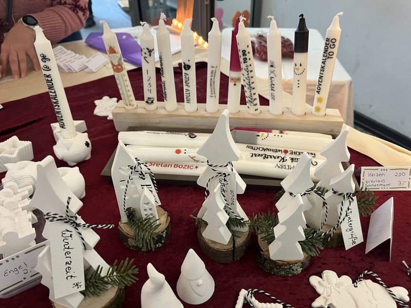 Jedes Jahr neu freuen wir vom Kreativkreis uns sehr, unsere - und vor allem Ihre - Lieblingsstücke auf dem traditionellen Weihnachtsmarkt im Lilo präsentieren zu dürfen. Unser Stand ist stets im Erdgeschoss vor der Unterstufenbibliothek zu finden.Wir sind eine Handvoll (aktueller und ehemaliger) Schülereltern, die bereits für den nächsten Weihnachtsmarkt im Dezember 2026 viele neue Ideen zusammentragen. Aber auch viele altbewährte Kleinigkeiten und größere Projekte werden über´s Jahr verteilt mit viel Fingerspitzengefühl, Hingabe und Ausdauer erstellt. Dazu treffen wir uns regelmäßig im Werkraum des Lilos, vieles wird aber auch zuhause gebastelt, je nach Möglichkeit und Wünschen der Mitmachenden.Teils ist die "Produktion" unserer Angebote für 2026 auch schon angelaufen...
