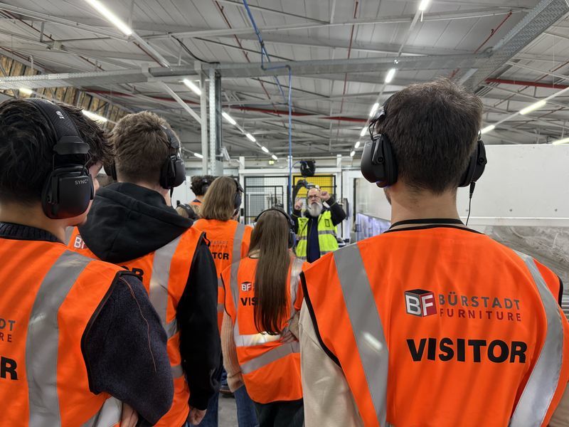 Am 10. Dezember 2025 besuchte der Wirtschafts-LK der K2 das Unternehmen Bürstadt Furniture.Während einer sehr unterhaltsam gestalteten Werksführung erhielt der Kurs spannende Einblicke in die Produktion der bekannten IKEA PAX Schränken und METOD Küchen, welche in Bürstadt täglich in beeindruckender Stückzahl (ca. 100.000 PAX pro Woche!) gefertigt werden.