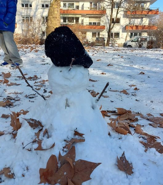 Die Schülerinnen und Schüler der Klasse 5c bauten am ersten Schultag nach den Ferien, 7. Januar, in der Klassenlehrerstunde diesen netten Schneemann und eine ebenso nette Schneefrau.