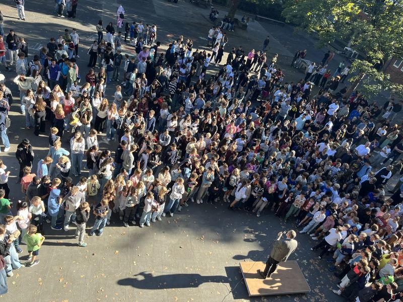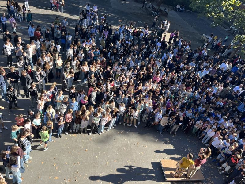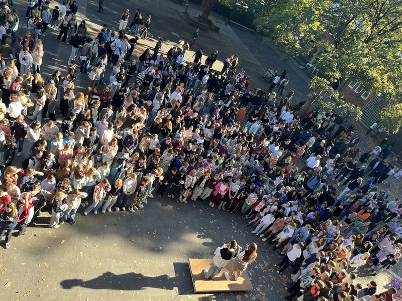 In einer Assembly vor der ersten Hofpause wurden am 19. September die neuen Schülerinnen und Schüler und Mitglieder des Kollegiums am Lilo willkommen geheißen.