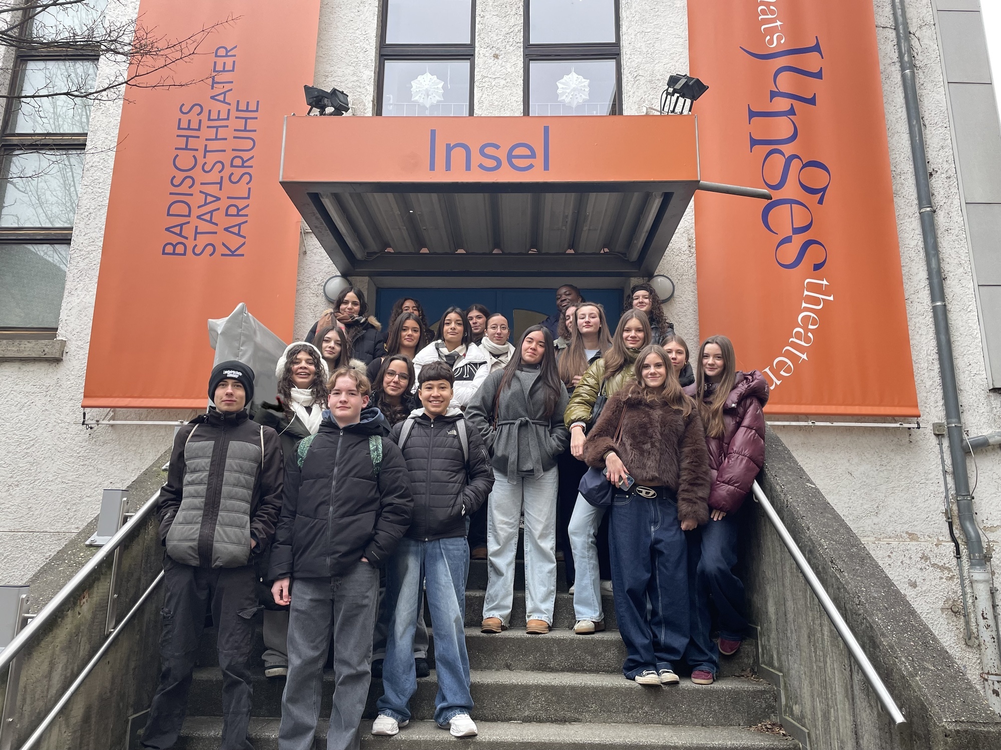 Die Klasse 9b sah sich am 26. Januar 2026 gemeinsam mit ihren Lehrerinnen Julia Kraus und Sophie Rudolph das Theaterstück „Die Welle“ im Jungen Staatstheater Karlsruhe an. Die kreative Übertragung des Romans (Morton Rhue, 1981) hat alle in den Bann gezogen und am Schluss war das Publikum durch die Direktansprache der Schauspieler mittendrin: Wie würden wir reagieren, wenn wir den negativen Folgen von Gruppendynamik - Mitläufertum, dem Wunsch dazuzugehören und Gruppenzwang - ausgesetzt wären? Würden unser kritisches Denken und unsere Emphatie reichen, um Ausgrenzung einzelner Menschen zu verhindern?Ein aktuelles Thema, nicht zuletzt rund um den anstehenden Anti-Diskriminierungstag am Lilo.