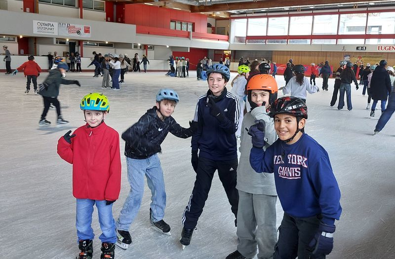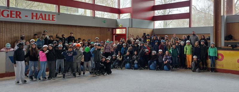 Am 22. November schnürte die Klasse 5a statt ihrer Turnbeutel die Schlittschuhe und machte sich auf den Weg zum Eissportzentrum. Dort schlitterten, schwebten und pirouettierten sie gemeinsam auf der spiegelglatten Fläche und stärkten ganz nebenbei ihre Klassengemeinschaft.Begleitet wurden die 5a von ihren beiden Patinnen Lisa-Marie und Alex sowie ihren Lehrern Thomas Degner und Faina Rüber.